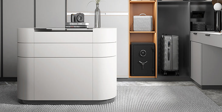 With this office fireproof safe, get more space for your valuables. Each fireproof safe comes with a fully adjustable shelf and 8 levels liftable height. It can be moved up and down to create layered space to meet the storage needs of different product sizes. The inside of the safe is fully covered with the thick felt to protect your weapons and valuables from scratching or damage. Combining function and fashion, this fireproof safe box is ideal for home, hotel, office and so on to keep your valuables safe.