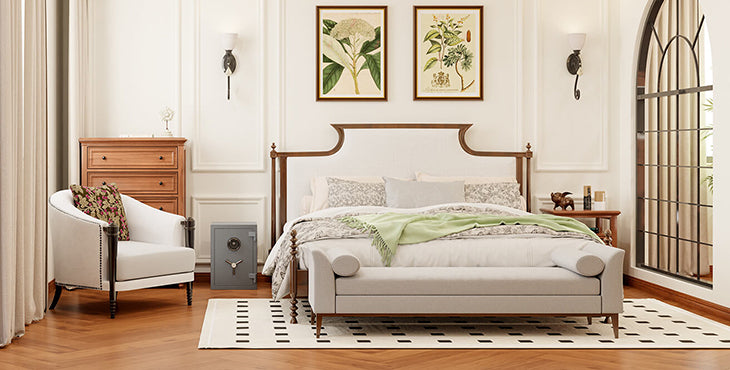 With this office fireproof safe, get more space for your valuables. Each fireproof safe comes with a fully adjustable shelf and 8 levels liftable height. It can be moved up and down to create layered space to meet the storage needs of different product sizes. The inside of the safe is fully covered with the thick felt to protect your weapons and valuables from scratching or damage. Combining function and fashion, this fireproof safe box is ideal for home, hotel, office and so on to keep your valuables safe.