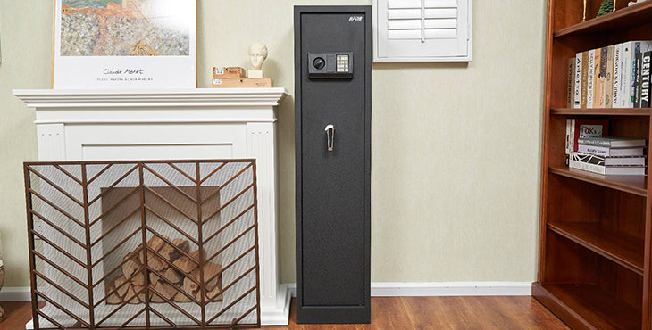 The 5 long gun safe is Larger and deeper than similar ones, fits practically anywhere for up to 5 rifles up to 49” long with or without scopes. It also has a separate Ammo Cabinet inside to store bullets, handgun, money and other valuables in your home or office. Featured on safes includes 5 live-door bolts and seamlessly welded pry-proof steel body for the ultimate prevention against break-in. For your security, the yellow light will light up with beeps if 3 incorrect entries are made, and the safe will time out and sleep for 20 seconds.